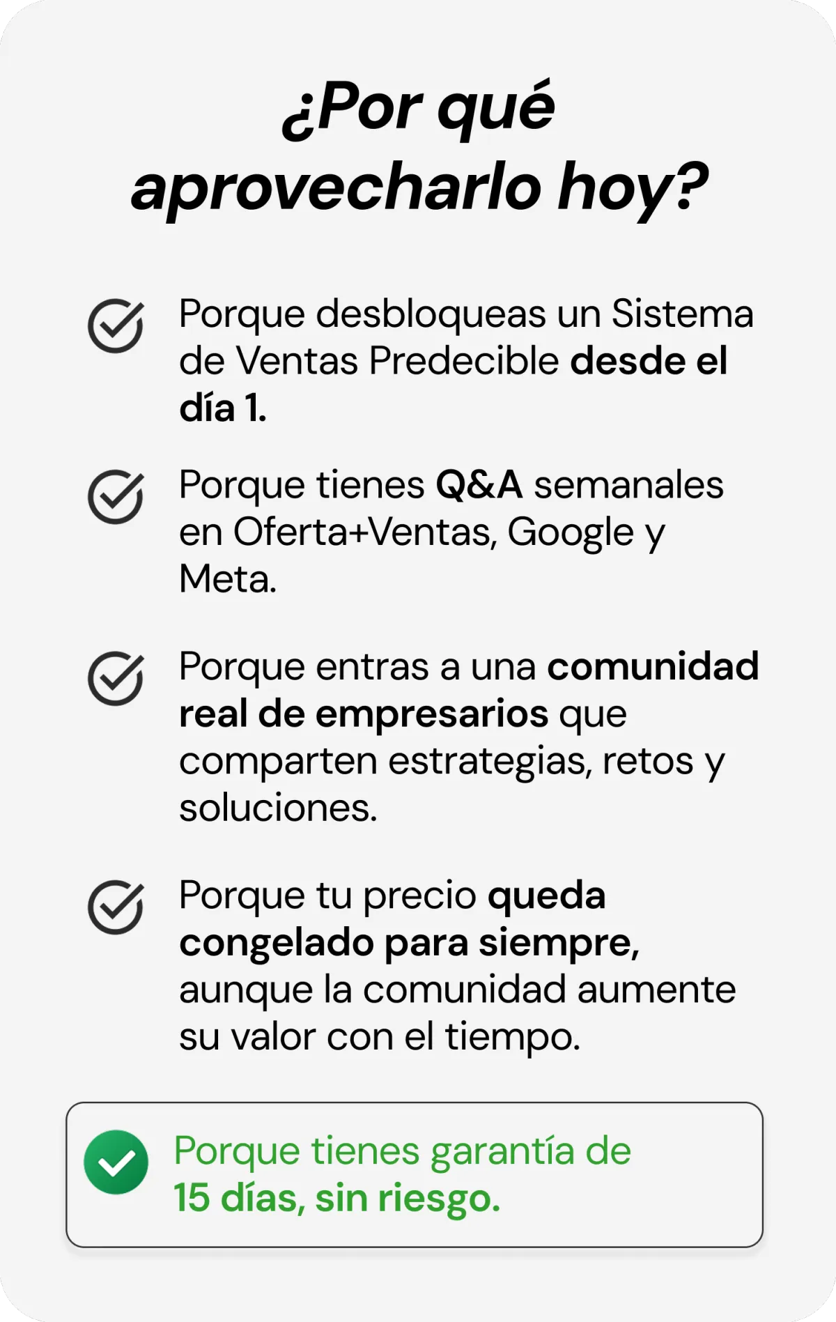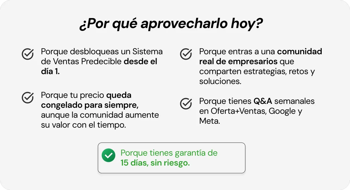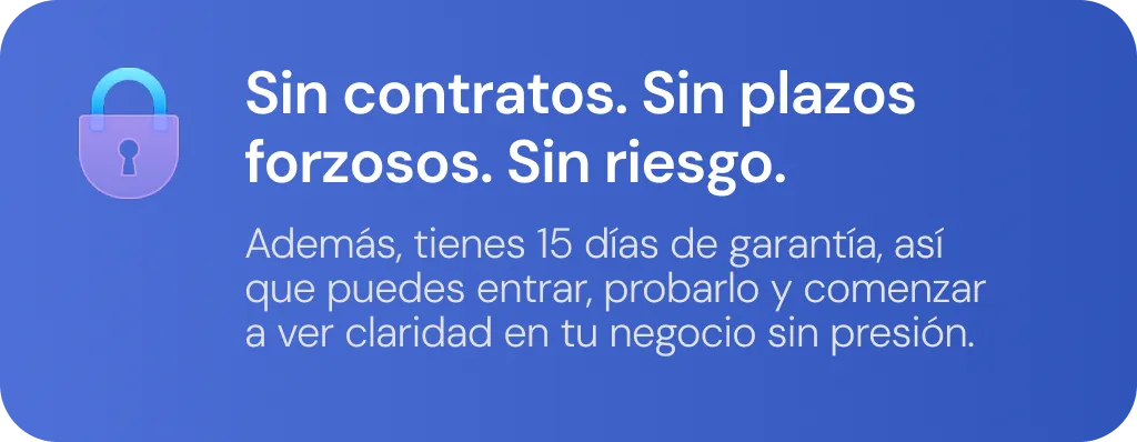 Además, tienes 15 días de garantía, así que puedes entrar, probarlo y comenzar a ver claridad en tu negocio sin presión.