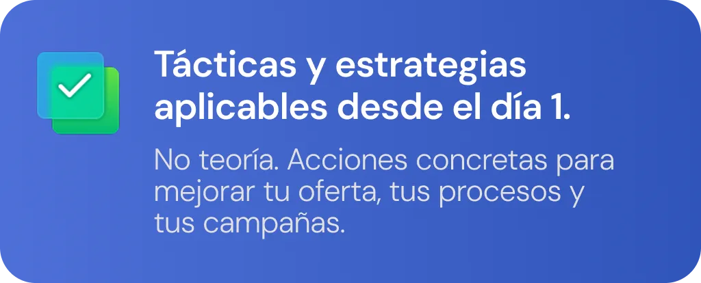 No teoría. Acciones concretas para mejorar tu oferta, tus procesos y tus campañas.